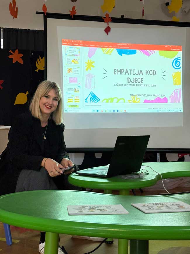 Odgojiteljica Irena Caglević je u sklopu Dječjeg tjedna održala predavanje za roditelje pod nazivom Empatija kod djece. Cilj predavanja bio je osvijestiti roditelje o važnosti razvoja i poticanja empatije kod djece.