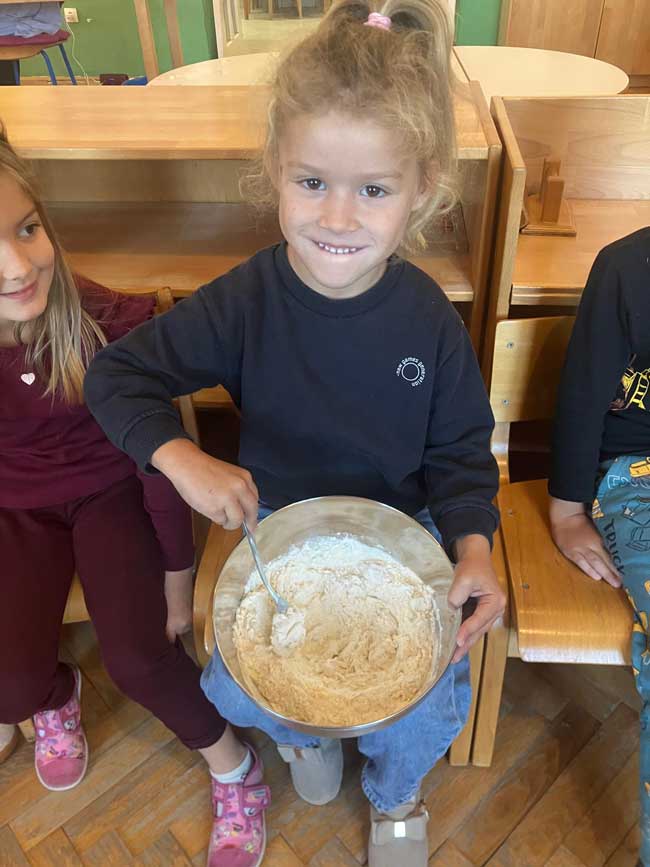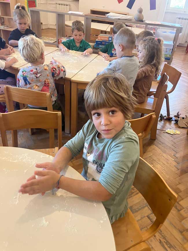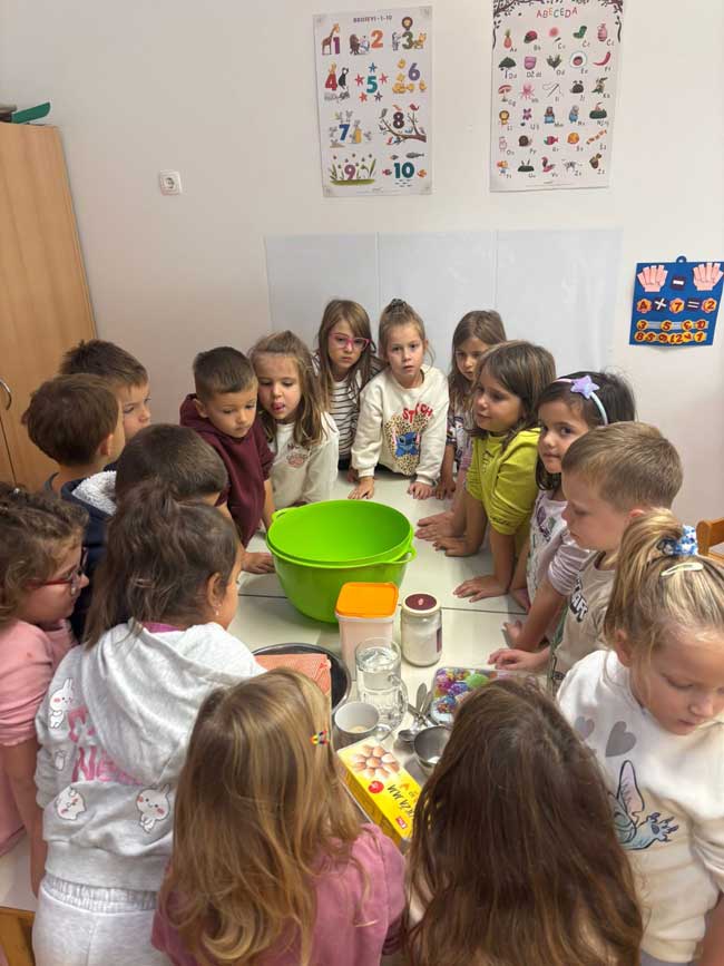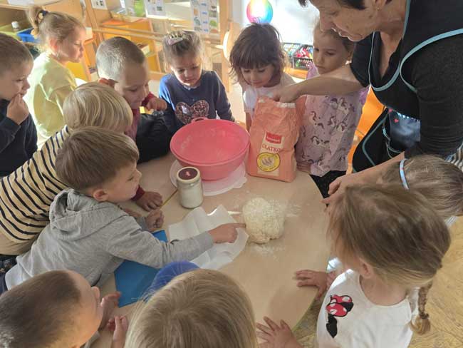 Povodom obilježavanja Dana kruha i zahvalnosti za plodove zemlje djeca su se upoznala s različitim vrstama žitarica i brašna. Učili su o tome kako brašno nastaje i na koje načine se peku različiti pekarski proizvodi. Dječje rukice bile su jako marljive i vrijedne. Djeca su mijesila i degustirala vlastiti kruh, peciva i pekarske proizvode. S velikim interesom istraživala su različite plodove koje nam zemlja donosi. Skupina broj 7 bila je u posjet lokalnoj pekari gdje su imali priliku vidjeti kako se proizvodi kruh i razne vrste peciva.