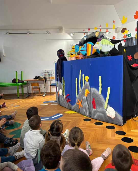 U našem je vrtiću 24. listopada 2025. godine gostovalo kazalište Produkcija Z s interaktivnim lutkarskim mjuziklom „Dobro se dobrim vraća“.