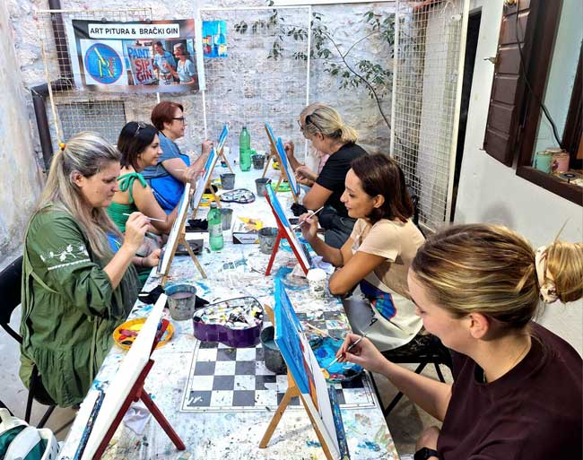 Slikanje je proteklo u ugodnoj i opuštajućoj atmosferi, a na kraju druženja svatko je nosio svoju sliku kući kao uspomenu na ovu zanimljivu radionicu.