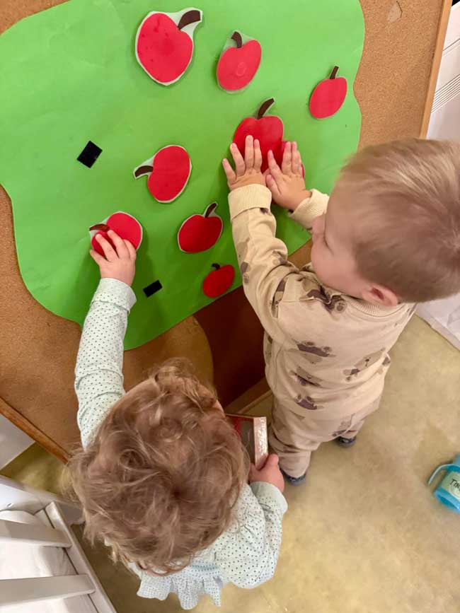 Tog se dana prostorijama vrtića širio miris slatkih jabuka. Djeca su imala priliku degustirati različite vrste jabuka, istražujući njihove okuse i teksture. Osim toga, koristili su i razne likovne tehnike kako bi na papir prenijeli i vizualnu ljepotu ovog voća, potičući i razvijajući kreativnost i učenje kroz igru.