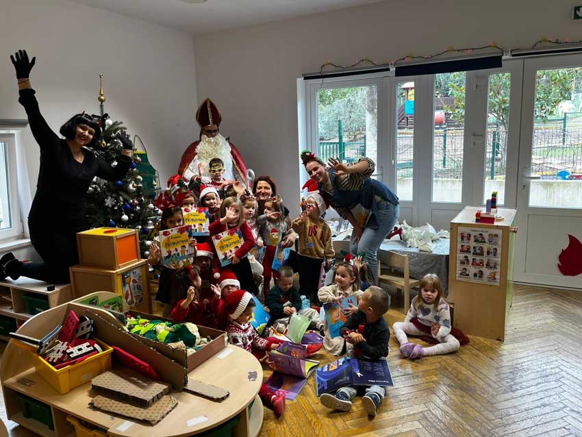Sveti Nikola je djeci pročitao priču o njemu, nakon čega je uslijedilo zajedničko pjevanje prigodnih pjesmica. Zatim je posjetio svaku skupinu i djecu razveselio poklonima – slikovnicama koje će ih podsjećati na ovaj poseban dan.