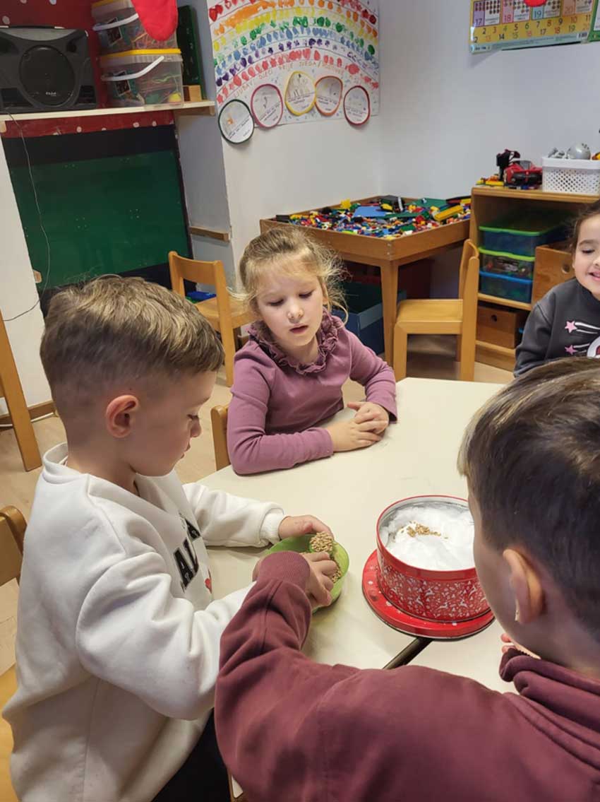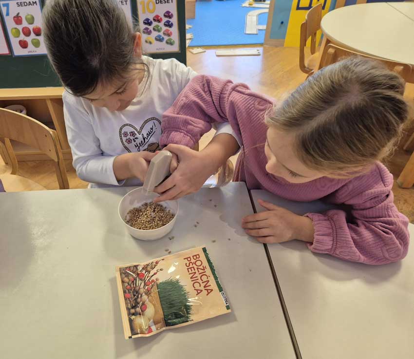 SADNJA BOŽIĆNE PŠENICE on 11 Prosinac 2025. Pred blagdan Svete Lucije djeca su u svojim skupinama sadila božićnu pšenicu. Neki s pamukom, neki sa zemljom, a svi s istim željama – da pšenica naraste što veća. < Pret Sljedeće >