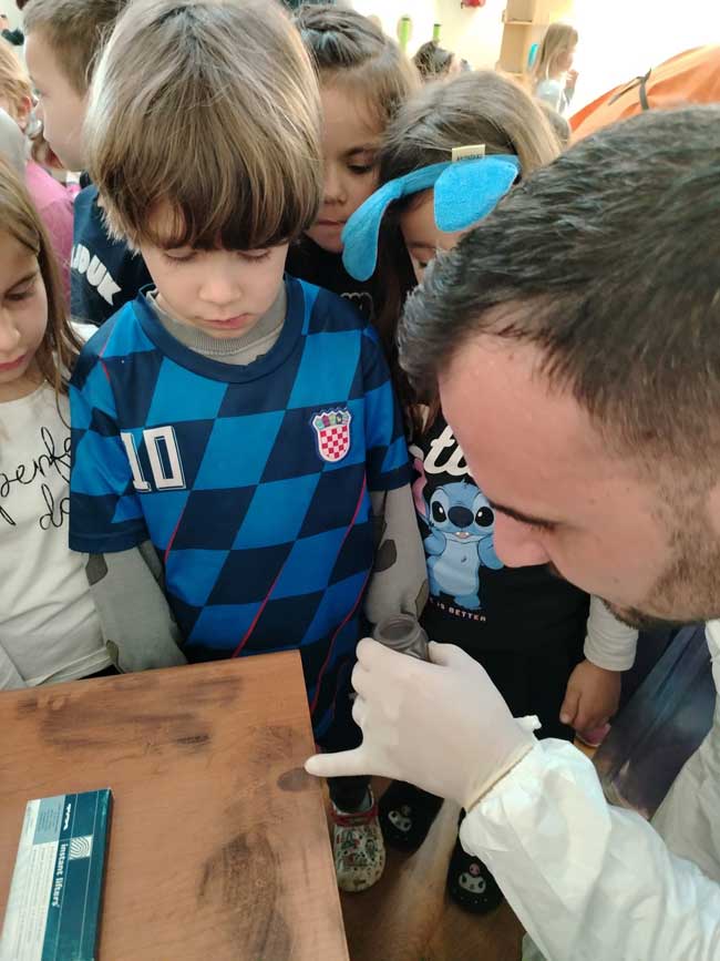 Objasnili su im pravila ponašanja u prometu i podsjetili koliko je važno pridržavati ih se. Posebnu pažnju privukao je kriminalistički tehničar koji je djeci pokazao kako se uzimaju otisci s mjesta zločina. Zanimljivo je bilo i razgledavanje policijskog vozila i opreme. Održano predavanje i prezentacija nastavak su preventivnih aktivnosti Policijske uprave Splitsko-dalmatinske usmjerenih prema djeci putem kojih se djeca potiču na odgovorno ponašanje u prometu od najranije dobi.