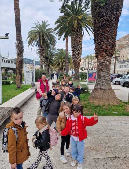 Predstavu „Pita moja mama imate li jedno jaje“ gledali su 3. i 6. ožujka 2026. godine. Vrijeme nakon predstave iskoristili su za uživanje na osunčanoj splitskoj rivi i gradskom parkiću. A zabavne pjesmice koje su djeca naučila na predstavi danima su odjekivale vrtićem.