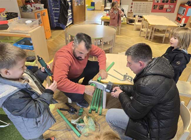 Potaknuta razgovorima, pričama, slikovnicama i ostalim poticajima djeca su imala priliku na različite načine izraziti osjećaje povezane s njihovim očevima. Najuzbudljivije je ipak bilo u vrtićkoj skupini br. 6 kad su očevi došli na radionicu izrade namještaja za djecu. U pozitivnoj radnoj atmosferi i uz obilje smijeha i zajedništva izradili su kuhinju, mreže za nogomet, šator i drvenu kućicu za lutke. Veliki odaziv očeva pokazao je koliko ovakva druženja znače i velikima i malima.